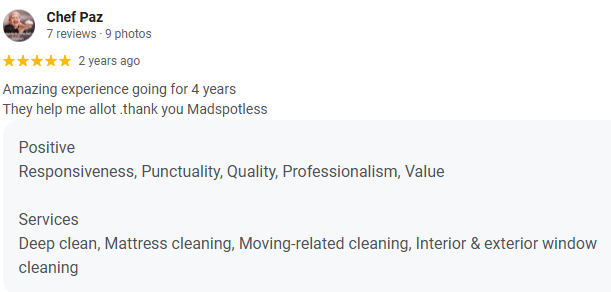 MadSpotless LLC Cleaning services in Madison was created by professionals with 12 years experience in the cleaning industry. Since we started in 2013 we have been adapting to the needs and demands of our customers introducing new areas and services so that our customers get a high satisfaction in all services we provide.